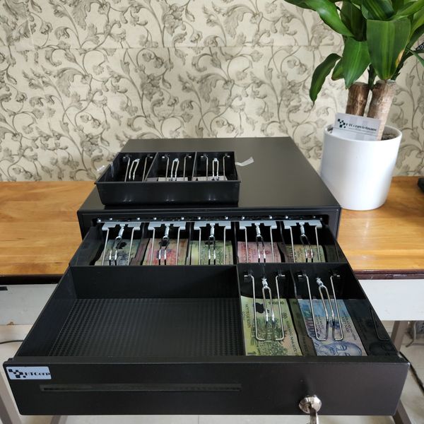 Sản phẩm được kết nối với kick-out máy in (RJ11) giúp bạn quản lý và kiểm soát tiền bạc một cách chính xác và tiện lợi hơn. Màu đen tinh tế của sản phẩm này sẽ phù hợp với nhiều phong cách thiết kế nội thất khác nhau.